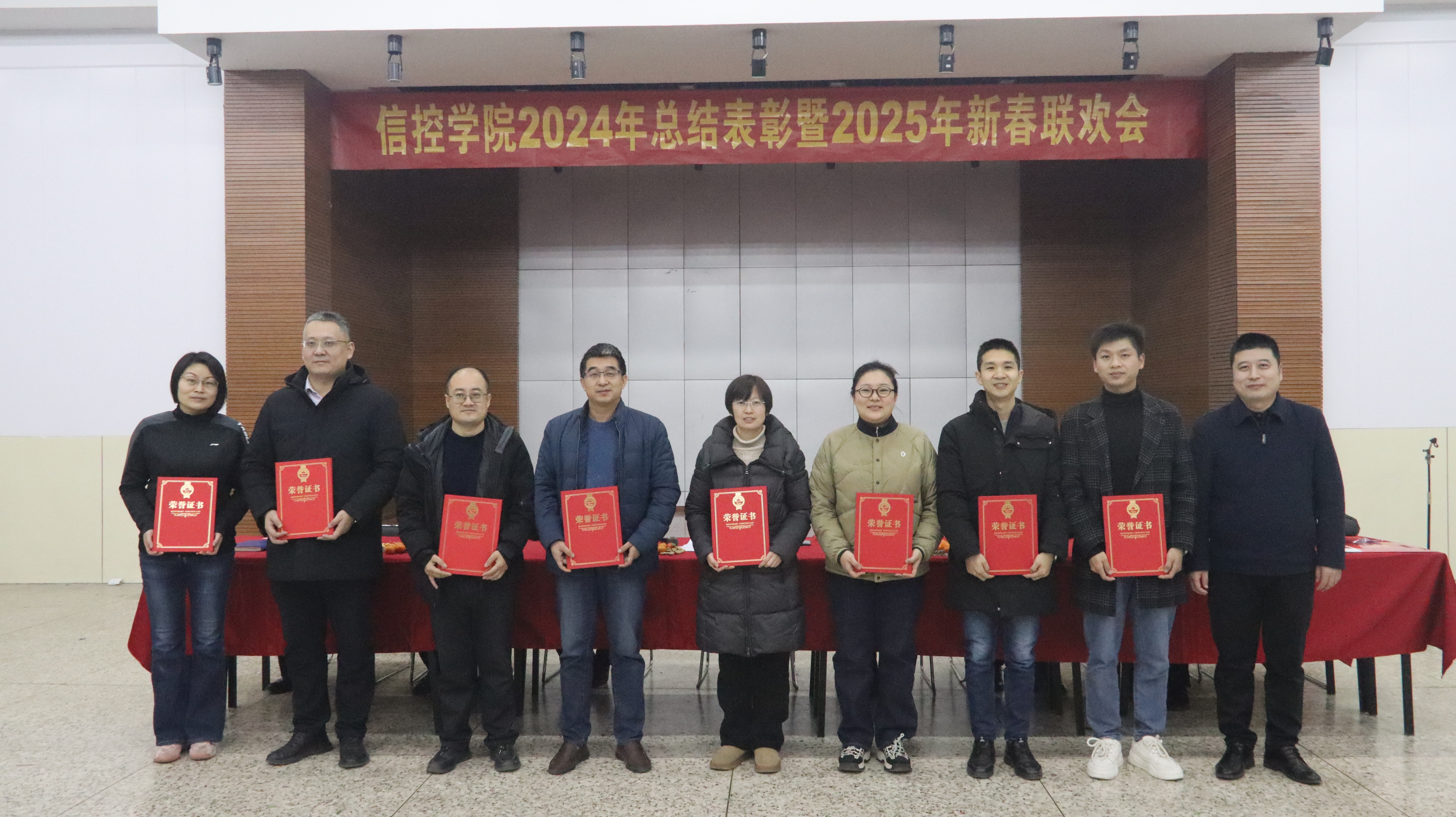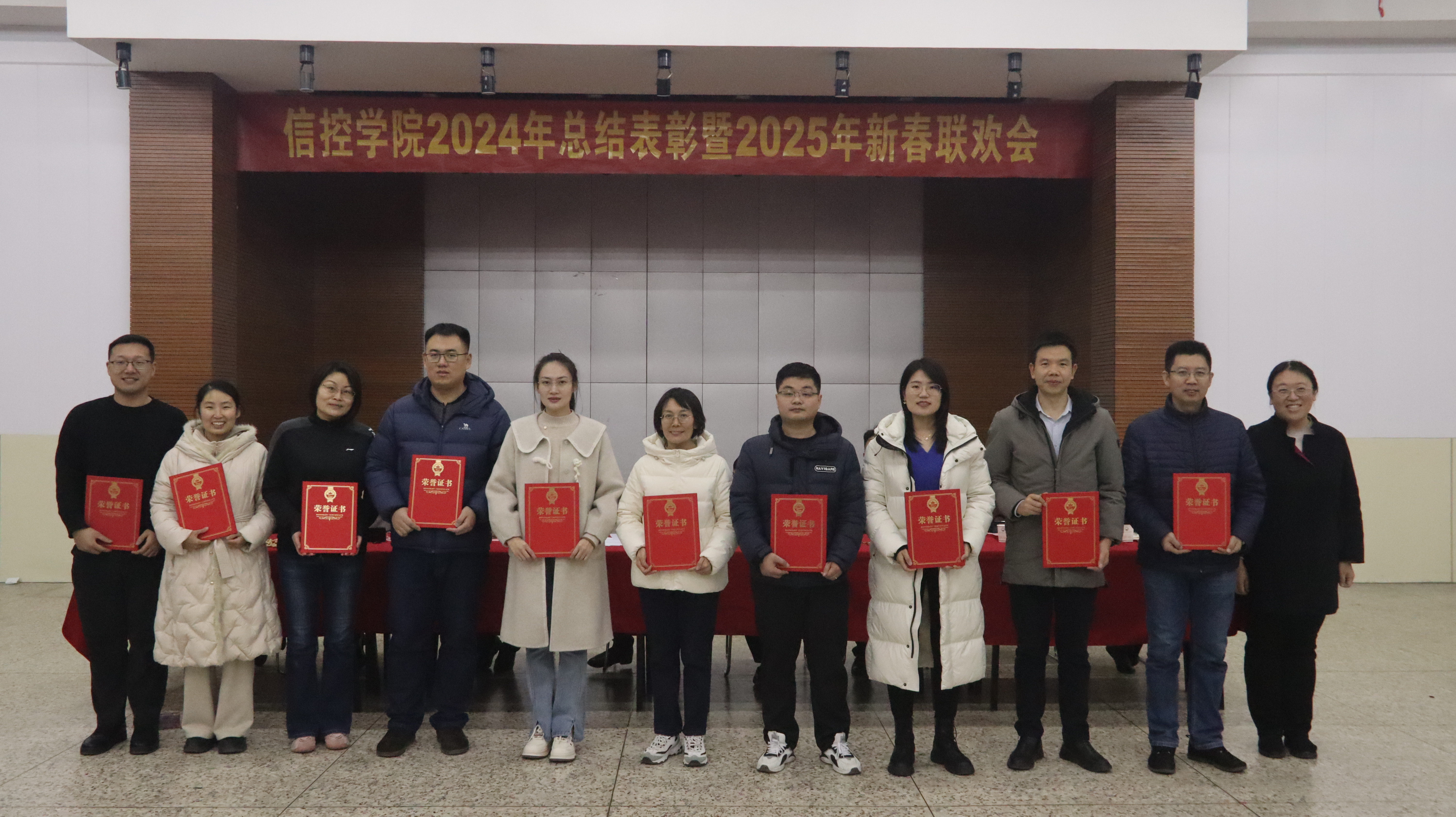 第一阶段举行学院2024年度总结表彰会,表彰会由副院长陈平主持。会上,院党委书记程德强向全体教职工的辛勤付出和离退休老同志的关心支持表示衷心感谢。他总结通报了一年来学院在学科专业建设、师资队伍建设、科学研究与平台建设、人才培养、内部治理、安全管理与实验室建设等方面所开展的工作及取得的成绩,对2025年学院工作进行了展望,并向全体教职工和离退休老同志送上了诚挚的新年祝福。随后,他宣读了《关于表彰2024年度信控学院教职工各类先进个人的决定》《关于表彰2024年度信控学院院级优秀班主任的决定》。与会领导分别为获得安全工作先进个人,本科教育教学先进个人,研究生教育教学、学科建设与科研工作先进个人,招生就业、学风建设与学科竞赛先进个人,管理服务先进个人等46名教职工以及10名院级优秀班主任颁发了荣誉证书。5名先进个人以及1名离退休老同志代表进行发言,分享了自己的心得体会与工作感悟。