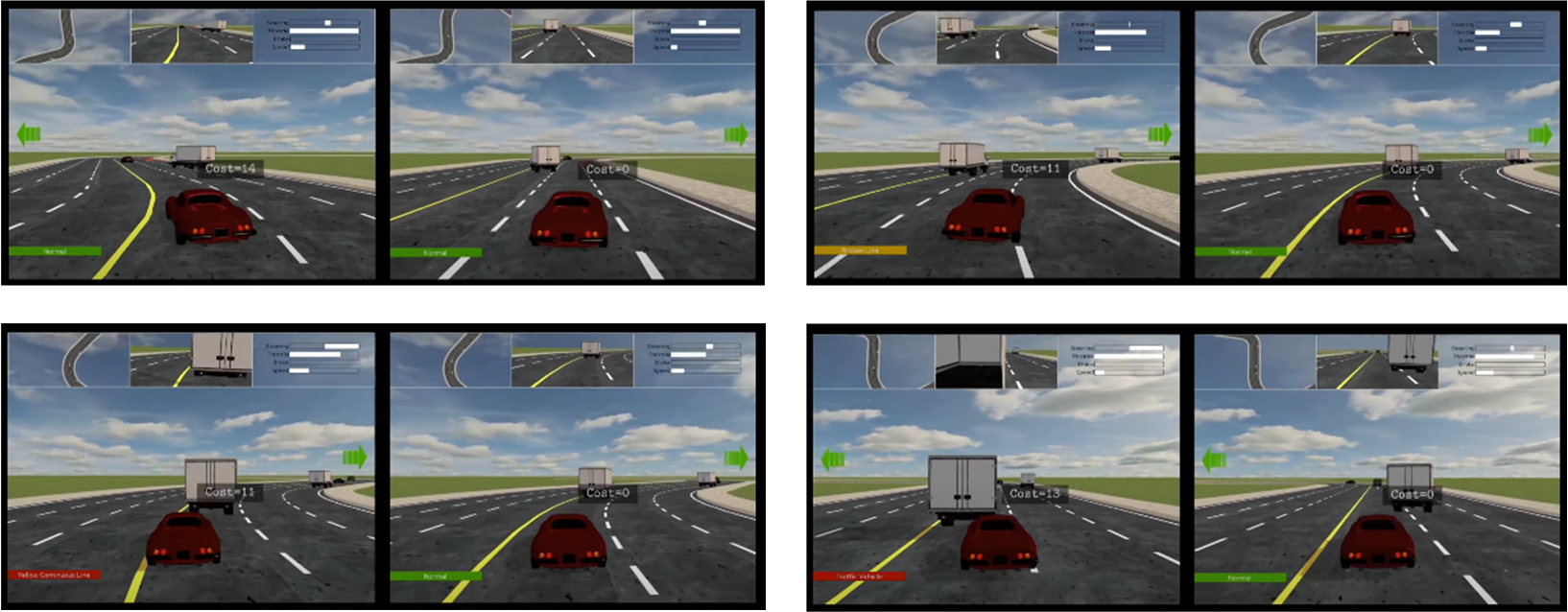 图1 在MetaDrive自动驾驶平台上的车道保持及避让驾驶效果
