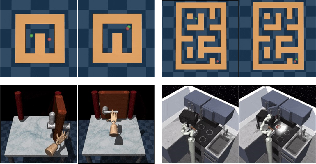 图5 Antmaze机器人导航、Adroit机器臂灵巧操作以及FrankaKitchen机器臂多任务灵巧操作的决策控制效果