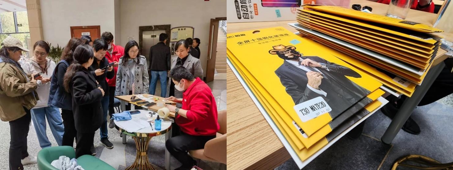 随着智能移动端的快速发展,手机已经成为“人体的一部分”,通过给手机贴膜不仅可以起到旧机翻新的效果,而且可以防水、防尘、减轻机主使用手机时的眼睛疲劳。活动前期,贴膜志愿者们积极策划活动方案,收集手机信息,采购对应型号的手机膜,为教职工提供更为精准的服务;活动现场,志愿者取下旧膜、喷洒清洁剂、擦干手机屏、对准边缘线、赶走小气泡……一连串动作一气呵成,既专业又温馨。参与活动的教职工对此给予高度评价,让他们感受到学院的满满关爱。