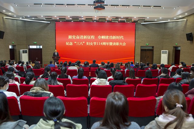 3月7日下午,学校在图书馆报告厅举行“跟党奋进新征程 巾帼建功新时代”纪念“三八”妇女节114周年暨表彰大会。校党委副书记李江涛,学校相关部门负责同志出席会议。会议由校工会副主席、妇委会副主任王蕾主持。