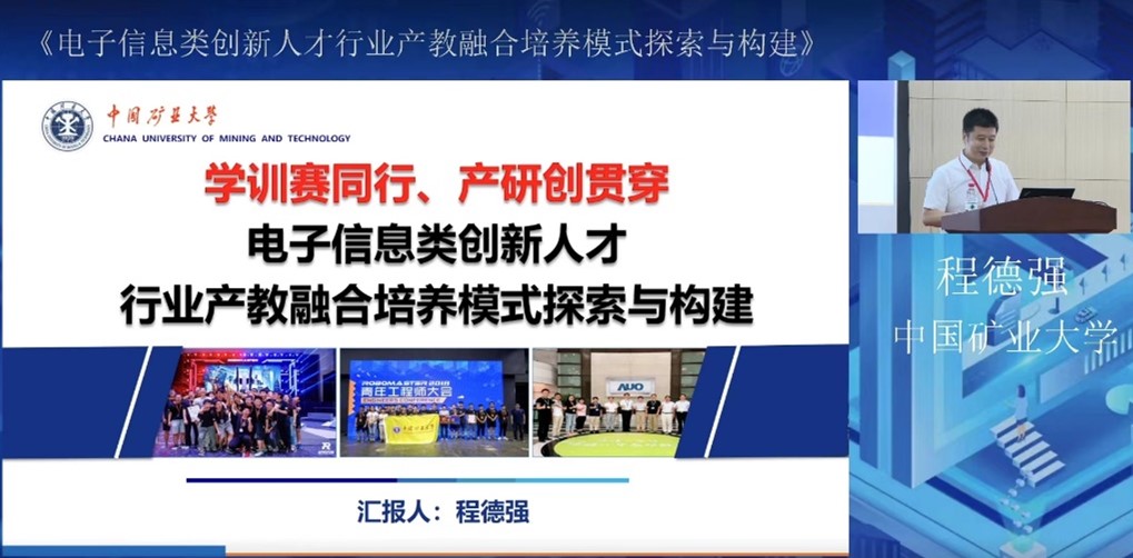 党委书记程德强教授、电子信息系主任徐永刚副教授等2人应邀参加了此次大会。程德强教授应邀作了题为“学训赛同行、产研创贯穿电子信息类创新人才行业产教融会培养模式探索与构建”大会报告。