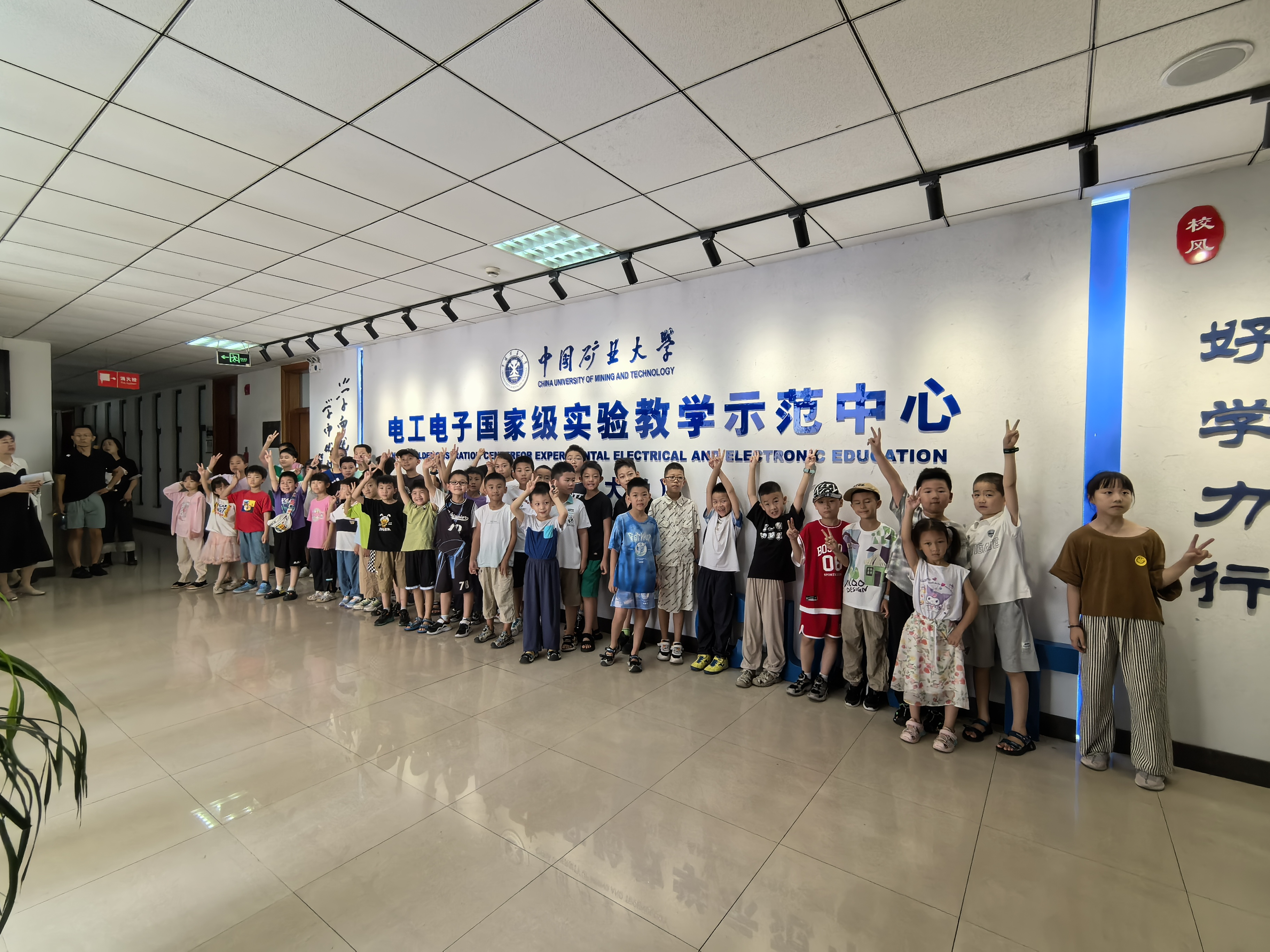 电工电子国家级实验教学示范中心举办了2024年暑假实验室面向中小学生开放电工电子科普活动。来自矿大附属中小学、江苏师范大学附属学校、青年路小学、铜山实验小学、徐州绿地小学、黄山中心小学等单位的近80名中小学生及学生家长参加活动。