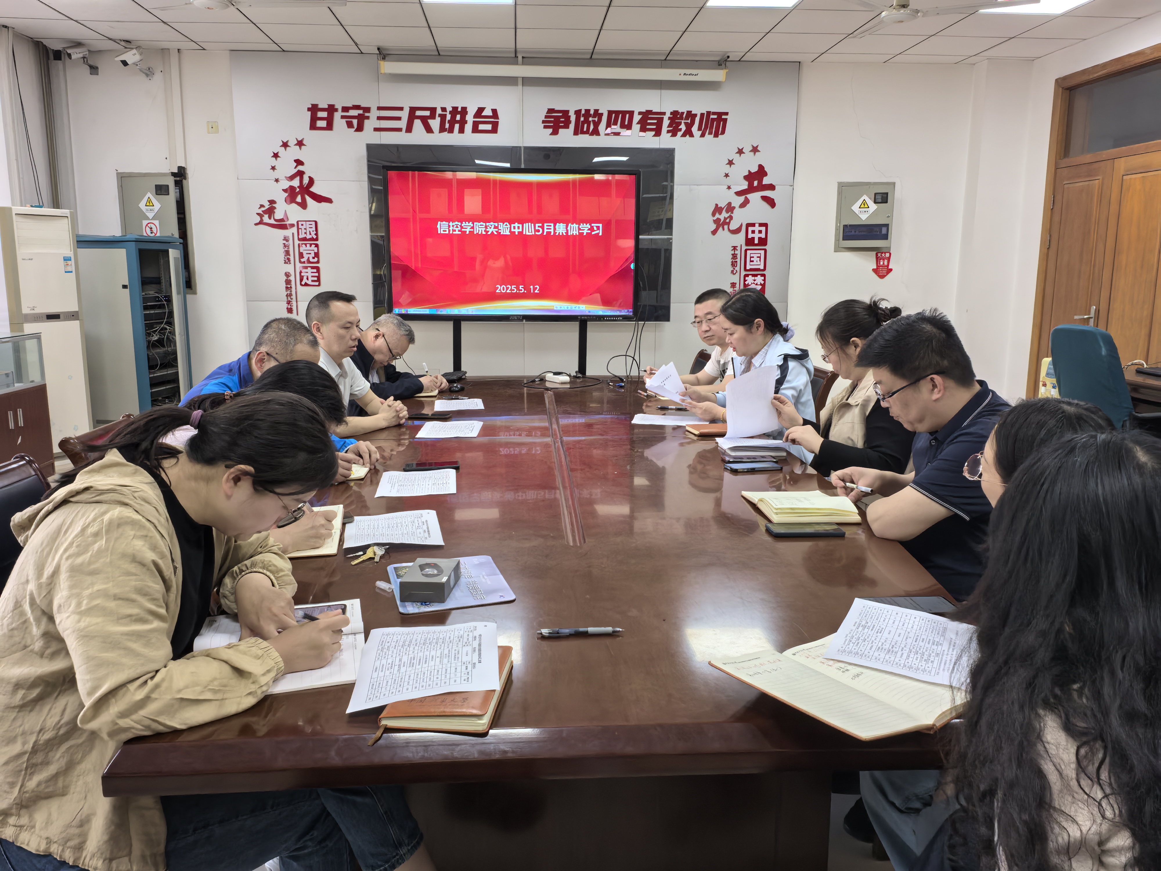 5月3日上午,信控学院实验中心在A408会议室举行5月份集体学习。副院长陈平、实验中心全体成员参加会议。会议由实验中心主任张晓春主持。